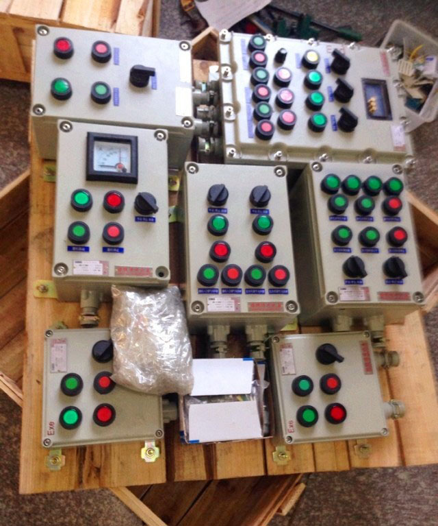 二、防爆控制箱。此類防爆控制箱型號為BXK52系列,其中X是箱體的簡稱,K為控制的縮寫。防爆控制箱主要用于控制各類電機或者輔助電器,主要由防爆按鈕和防爆指示燈組成。防爆控制箱箱體材料一般分為三種,即鋁合金、鋼板焊接和不銹鋼焊接。防爆控制箱箱體除安裝上述按鈕和指示燈外,還可以根據客戶要求安裝轉換開關、電流表、電壓表以及制定的各類儀表。
